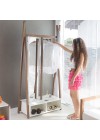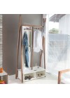 Material: Madeira maciça reflorestada de eucalipto. MDF BP revestido com melamina de alta resistência. Cabideiro removível. 02 ganchos duplos de plástico brancos atrás do espelho giratório. Peso: 27kg.