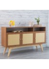 Fabricado em MDF BP 15mm revestido com melamina de alta resistência. Pés e detalhes em madeira maciça (taeda) com acabamento em stain não verniz. Porta com aplicação de rattan natural. Entregue desmontado e embalado em caixa de papelão. Peso: 30kg. Capacidade suportada: 30kg.