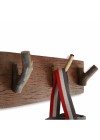 Fabricado manualmente com madeiras reaproveitadas de eucalipto e galhos sortidos. Acabamento com verniz incolor a base d'água. Para instalação é indicado utilizar um parafuso ou gancho em "L" (não acompanha). Peso: 1,6kg. Capacidade suportada: 3kg.
