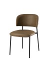 Cadeira com assento e encosto estofados e estrutura de madeira eucalipto. Acabamento em tecido de Couro Natural e base em aço pintado na cor Preta. Peso: 8 kg. Capacidade suportada: 120 kg. Produto entregue montado.