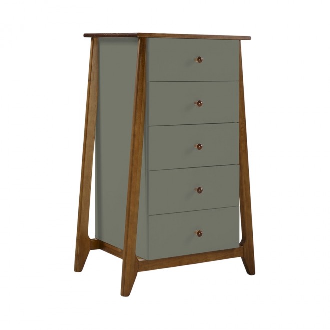 Produto entregue desmontado. Estrutura externa em madeira maciça de fonte renovável e acabamento em verniz natural. Estrutura interna e gavetas em MDF com acabamento em pintura laca fosca de alta qualidade. Gavetas com corrediças telescópicas.