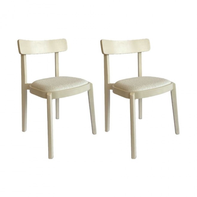 Produto entregue montado. Garantia de 3 meses (contra defeitos de fabricação). Capacidade suportada 120kg. Peso de 15kg. Cadeira com estrutura em madeira maciça de tauari. Assento anatômico estofado e espuma D28. Encosto anatômico em MDF multilaminado. és em madeira maciça de Tauari pintados na cor Creme. Material do encosto: compensado em MDF multilaminado. Assento anatômico com enchimento (densidade da espuma) D28 revestido em tecido Bouclé na cor Off White (100% Poliéster).