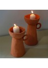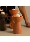 A dupla de castiçal brutalismo cor ocre (P e G) - faz parte da série brutalismo e traz referências estéticas ao movimento homônimo da arquitetura moderna que enfatizava a "verdade dos materiais", por isso aqui a cerâmica não recebe nenhum revestimento externo, enfatizando a peça como ela é.