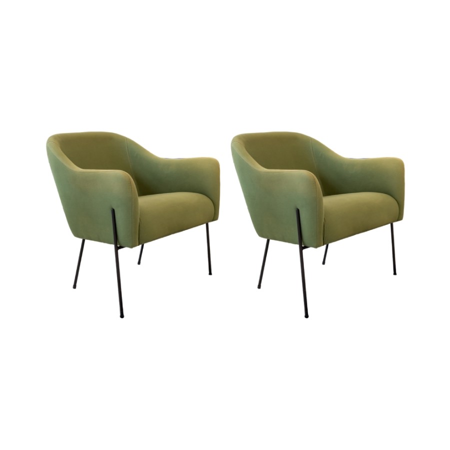 Poltrona fabricada com concha mutilaminada, revestida com espuma D28 e tecido linho verde. Pés em aço carbono pintado. Peso: 18kg. Produto entregue montado. Altura do chão até o assento: 45cm. Altura até o topo do braço: 60cm. Altura do encosto: 42cm. Profundidade do assento: 49cm. Capacidade suportada: 130kg. Obs: As cores dos produtos no site podem variar devido às configurações do monitor e resolução, resultando em variações sutis em relação às imagens.