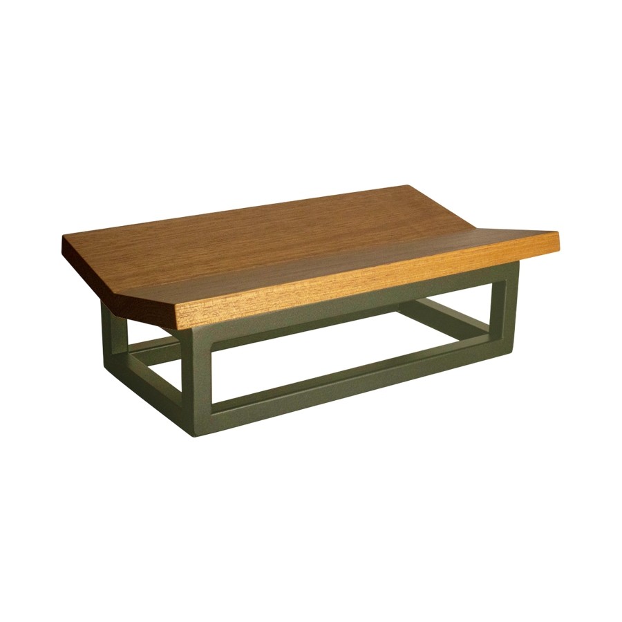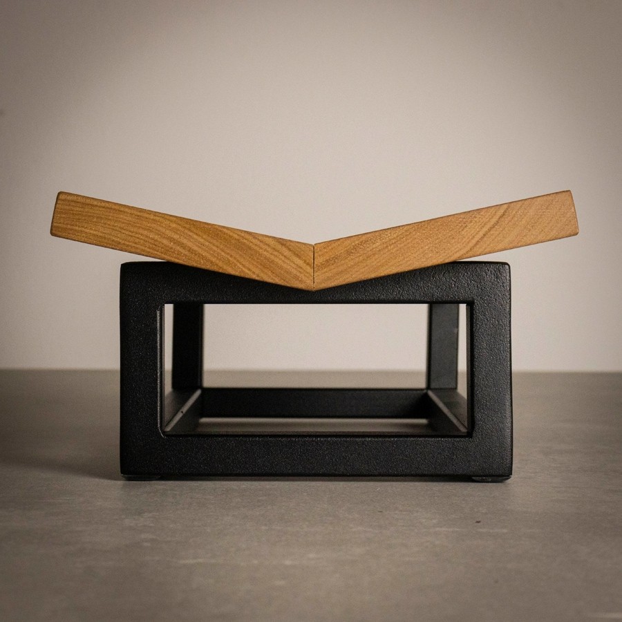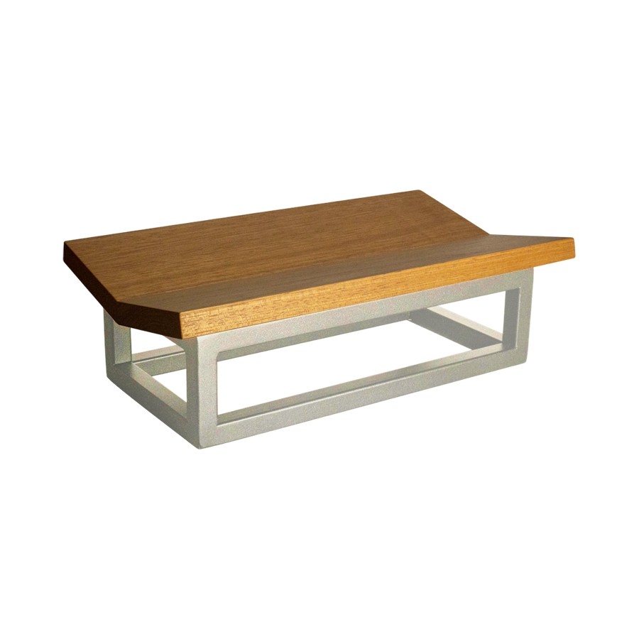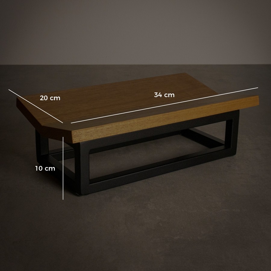 Entregue montado. Bandeja superior em madeira maciça com acabamento em seladora à base d'água atóxica. Base em ferro com pintura eletrostática a pó microtextura fosca. Peso: 0,95kg. Capacidade suportada: 1kg. Garantia: 90 dias contra defeitos de fabricação.