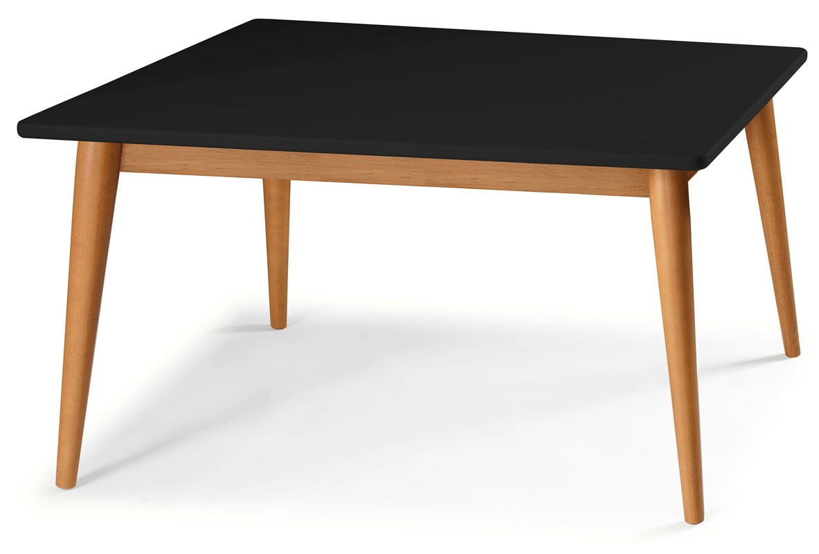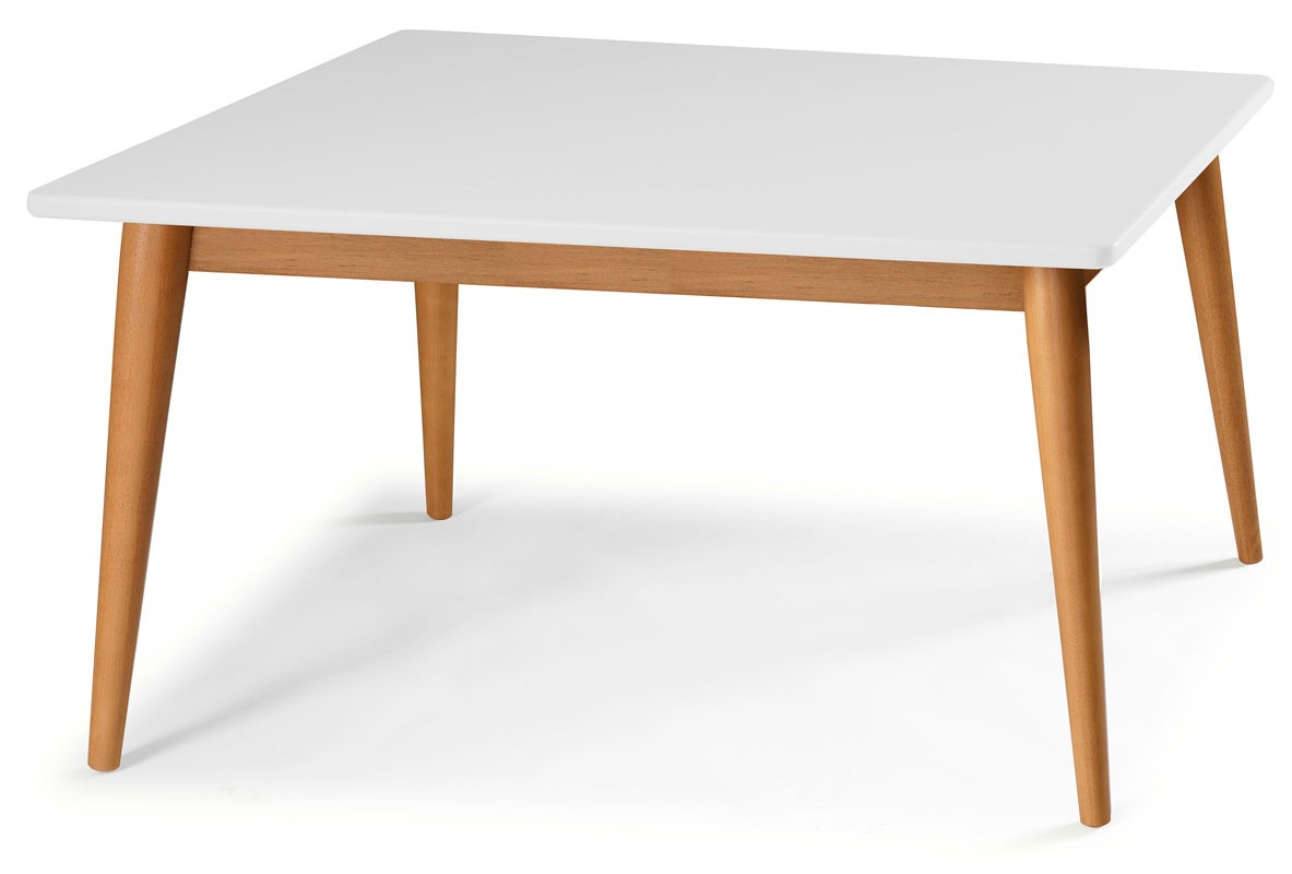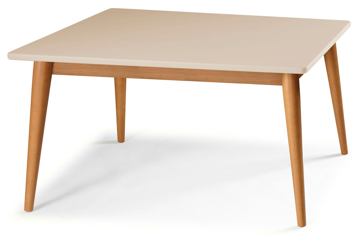 Estrutura feita de madeira maciça proveniente de reflorestamento (Tauari) e tampo da mesa em MDF com acabamento em laca. O produto é entregue parcialmente montado, apenas necessitando o encaixe dos pés. Sua capacidade suportada é de 55kg.