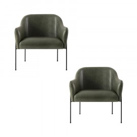 Conjunto de 2 Poltronas Ronda Couro Natural Verde