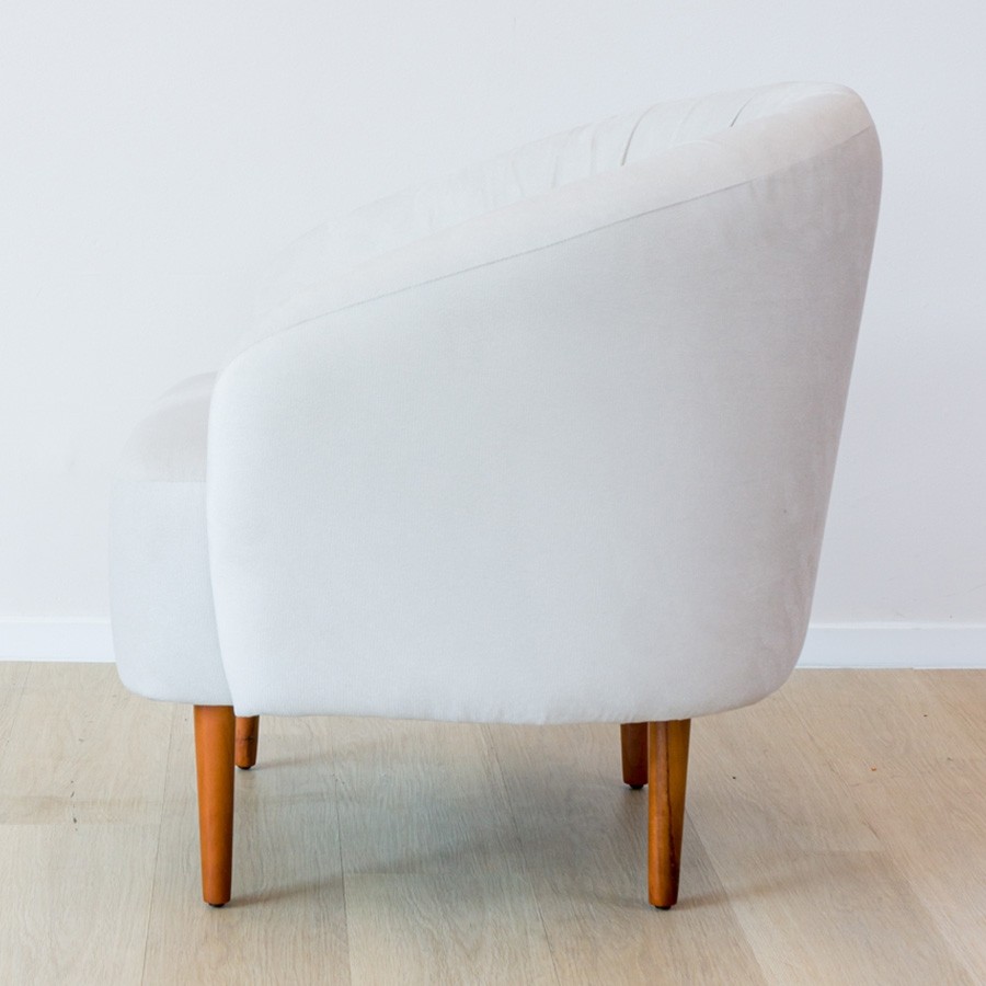A nossa Poltrona Estofada Ariana é a escolha ideal para destacar diferentes ambientes, levando mais conforto e complementando a decoração de uma forma prática. Seu encosto curvo chama a atenção com facilidade, abraçando a curvatura do corpo, proporcionando um maior conforto e levando um design elegante para sua sala de estar, escritório ou onde mais for preciso. O assento ganha um estofamento alto, com espuma D-028 e D-20 soft, revestido em manta de poliéster resinada e tecido. Os pés em madeira com tonalidade clara que dá um contraste harmônico em todo o produto. Experimente combinar com a Namoradeira Ariana para uma composição charmosa!