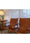 Desenhado por Bruno Faucz a Poltrona Coimbra não poupa autenticidade. Dona de uma estrutura toda feita em madeira maciça tauari e assento de couro natural no tom caramelo, mantém a combinação clássica e assertiva. O toque luxuoso fica por conta do design da poltrona que chama a atenção de qualquer ângulo que for vista. O encosto largo combinado com o assento profundo proporcionam mais conforto, sendo assim ideal para relaxar, aproveitar bons momentos ou até mesmo ler um bom livro.