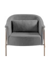 Poltrona fabricada com concha mutilaminada, revestida com espuma D28 e tecido. Almofada de rins decorativas. Base em aço carbono (preto ou dourado). Peso da poltrona: 20kg. Peso do puff: 8kg. Produto entregue montado. Poltrona com altura do chão até o assento: 45cm. Obs: As cores dos produtos no site podem variar devido às configurações do monitor e resolução, resultando em variações sutis em relação às imagens.