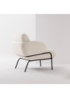 Produto entregue montado. Peso da Poltrona: 11kg. Capacidade suportada: 140kg. Estrutura externa em metal pintado. Estrutura interna em madeira eucalipto com revestimento em espuma D26 e tecido Bouclé.