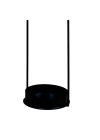 O produto é entregue montado, sem necessidade de montagem adicional e sem manual de instruções. Fabricado com estrutura de metal (aço carbono) e bandeja em alumínio, possui detalhe tramado em couro caramelo e estrutura com pintura esmalte PU na cor preta. A capacidade de suporte é de 3 kg.