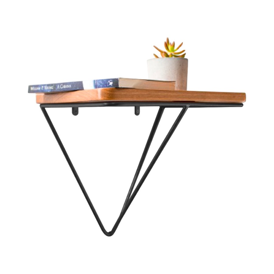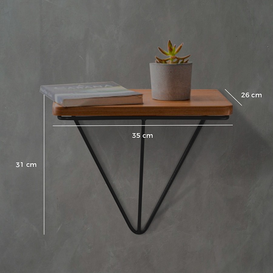 Produto entregue montado. Peso: 1kg. Capacidade suportada: 15kg. Suporte em ferro trefilado. Pintura eletrostática a pó (tinta poliéster e microtextura), maior durabilidade e qualidade. Prateleira em madeira maciça com acabamento. Acompanha kit instalação de buchas 6mm e parafusos. Por se tratar de madeira maciça pode sofrer alterações de tonalidades. Os objetos que ambientam as fotos não acompanham o produto.