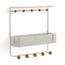 Fabricado em placa de acrílico cristal 4mm e ripas de mdf + pintura em laca fosca. Oito ganchos em zamac para pendurar objetos. Incluí parafusos e buchas para pendurar o móvel na parede. Produto entregue montado. Deve-se colocar parafusos com buchas na parede conforme posição dos encaixes para parafusos, que podem ser observados na parte anterior do produto. Peso: 4kg (60cm) e 11,7kg (125cm). Capacidade suportada: 15kg.