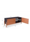 Bordas e painéis com acabamento de melamina de alta resistência. Textura do MDF padrão madeira Freijó. Portas com 2 dobradiças de metal tipo caneco 35mm. Travessa em madeira maciça. Tapa-furos na cor do móvel. Pés em madeira maciça taeda com acabamento em stain incolor. Porta em madeira maciça taeda. Produto entregue desmontado.