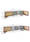 Fabricado em MDF BP 15mm revestido com melamina de alta resistência. Pés e detalhes em madeira maciça (jatobá ou taeda) com acabamento em stain não verniz. Porta com aplicação de rattan natural. Entregue desmontado e embalado em caixa de papelão. Peso: 34kg (160cm) e 38kg (180cm). Capacidade suportada: 25kg.