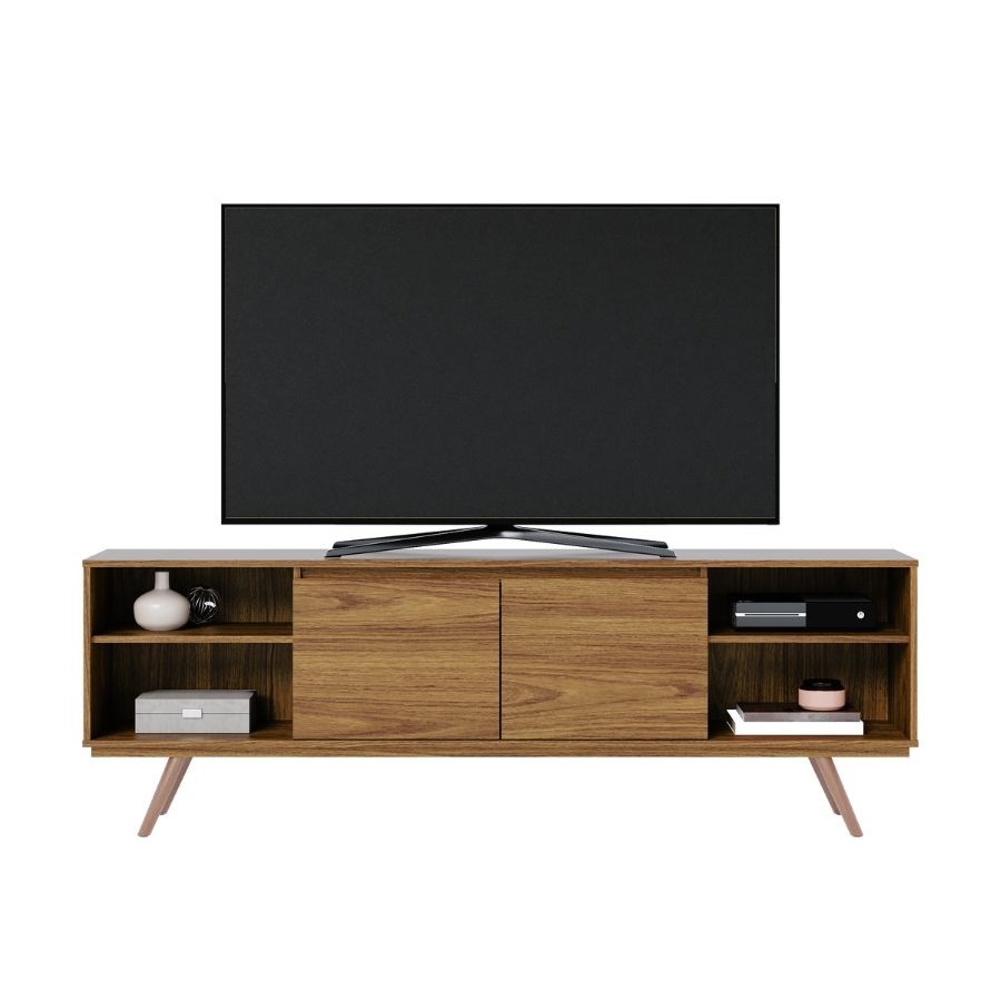 Inspirado no design moderno, o Rack para TV Jazz proporciona um visual descontraído e sofisticado para a decoração da sua Sala de Estar ou Sala de TC. É todo produzido em BP, garantindo resistência para acomodar os mais diversos tipos de TVs. Possui 2 portas com nichos nas laterais e capacidade para armazenar todos os seus acessórios de entretenimento, eletrônicos e decoração. Suporta confortavelmente televisores de até 75 polegadas para você assistir suas séries favoritas, e possui três recortes de gerenciamento de cabos na parte de trás. O Rack de TV Jazz tem 1,80m de comprimento, 60,5cm de altura e 36cm de profundidade.
