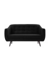 Sofá 2 lugares fabricado com madeira eucalipto. É revestido com espuma D28 e tecido com botonê no encosto. Cores: Cinza (Tecido Linho), Preto (Tecido Veludo), Verde (Tecido Linhão), Marsala (Tecido Linho), Azul Marinho (Tecido Linhão) e Bege (Tecido Linho). Produto entregue desmontado. Altura do sofá sem os pés: 34cm. Profundidade interna: 44cm. Capacidade suportada: 80kg por assento.