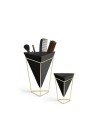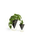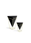 Para acomodar plantinhas ou até mesmo objetos de escritório com muito charme! Esta dupla de Vasos Trigg possui um design moderno e geométrico e pretende deixar a decoração da sua mesa muito mais bonita e moderna. Fabricado em cerâmica e armação em metal dourado. O conjunto contém duas unidades: O vaso grande mede 15,5cm x 14cm x 20,3cm, e o vaso menor mede 11cm x 9,8cm x 14,3cm.