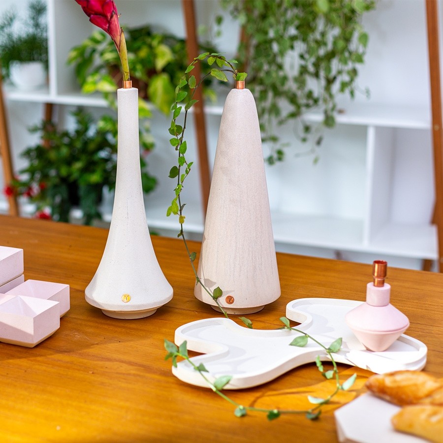 Os Vasos Oscar remetem à sua linguagem, trazendo uma harmonia bastante reconhecida em seus desenhos, possibilitada pela suavidade de curvas. Oscar Niemeyer (1907-2012) revolucionou a arquitetura ao trazer para primeiro plano suas formas curvas modeladas em concreto, ampliando vastamente a linguagem racionalista típica da arquitetura moderna. É impossível falar sobre o uso do concreto no Brasil sem mencionar a criatividade pulsante de seus traços e sua ousadia técnica.